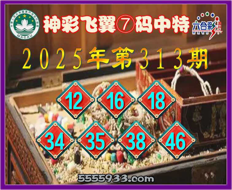 313期:〖神彩飞翼〗 ⑦码中特【12.16.18.34.35.38.46】开:38准