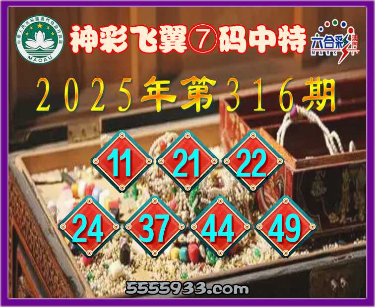 316期:〖神彩飞翼〗 ⑦码中特【11.21.22.24.37.44.49】开:24准