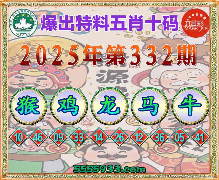 332期:《爆出特料》 五肖十码【猴鸡龙马牛】开:龙26准