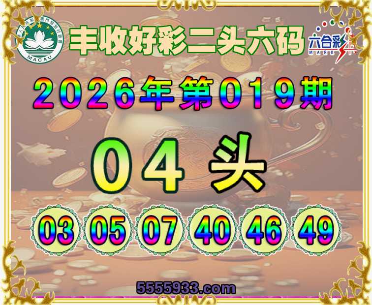 019期:《丰收好彩》 二头六码【04头】开:猴46准