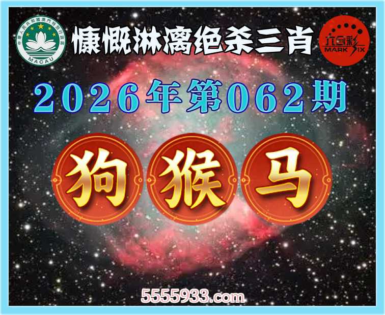 062期:『慷慨淋漓』 绝杀三肖【狗.猴.马】开:羊24准