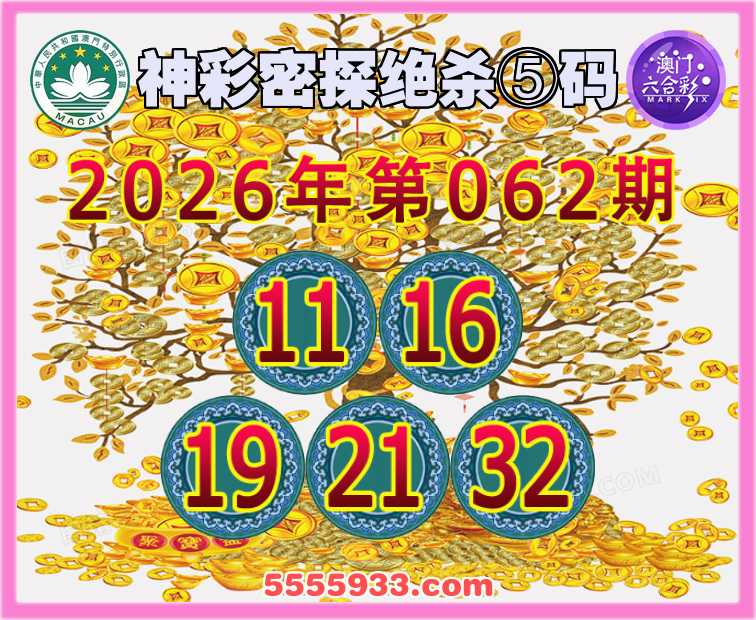 062期:『神彩密探』 绝杀⑤码【11.16.19.21.32】开:羊24准