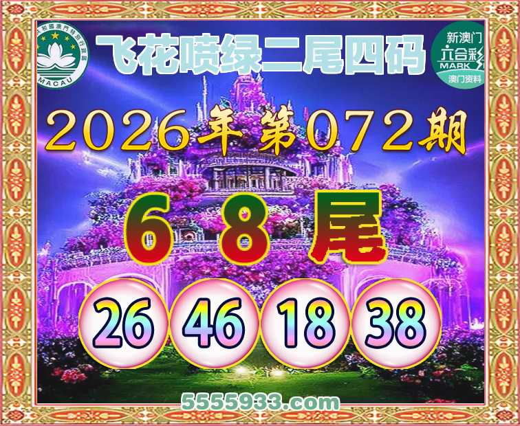 072期:【飞花喷绿】 二尾四码【68尾主:26.46.18.38】开:46准